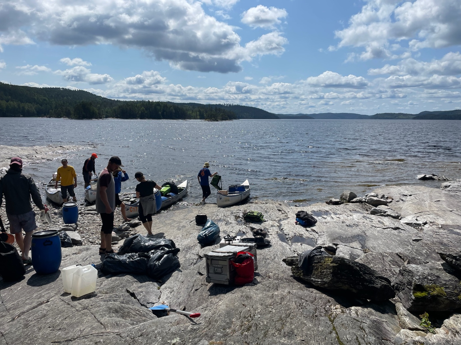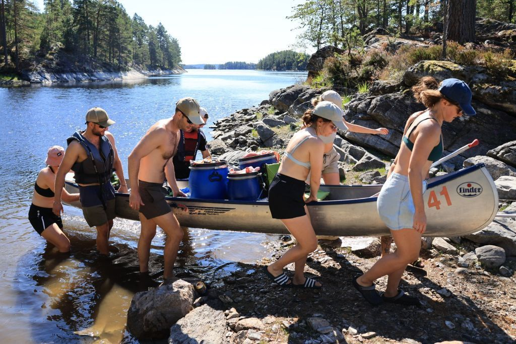 Nach einem gemütlichen Frühstück packen wir gemeinsam unsere Ausrüstung und starten in die Wildnis. Zelte, Schlafsäcke und Verpflegung kommen in wasserdichte Tonnen oder Packsäcke und werden in den Kanus verstaut.